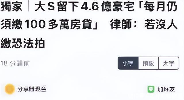 这套房子价格高达数亿新台币,是大S生前和具俊晔一起居住的地方,里面装满了两人相处的点点滴滴,是他们爱情的见证。 但如今这套充满回忆的房子,却成了一个随时可能爆雷的定时炸弹。 银行多次发出催缴通知,要求偿还欠款,可他始终没有处理导致房子已经面临法拍的风险。